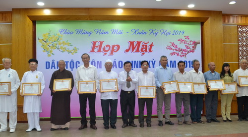 Dịp này, UBND tỉnh đã tặng bằng khen cho 12 cá nhân có nhiều thành tích đóng góp trong việc hướng dẫn, vận động các tín đồ tôn giáo, đồng bào dân tộc thiểu số tham gia tích cực vào các phong trào thi đua yêu nước do Mặt trận Tổ quốc phát động. Tỉnh uỷ, HĐND, UBND, UB MTTQ Việt Nam tỉnh cũng đã tặng quà chúc mừng năm mới tới đại diện các chức sắc tôn giáo, dân tộc thiểu số.