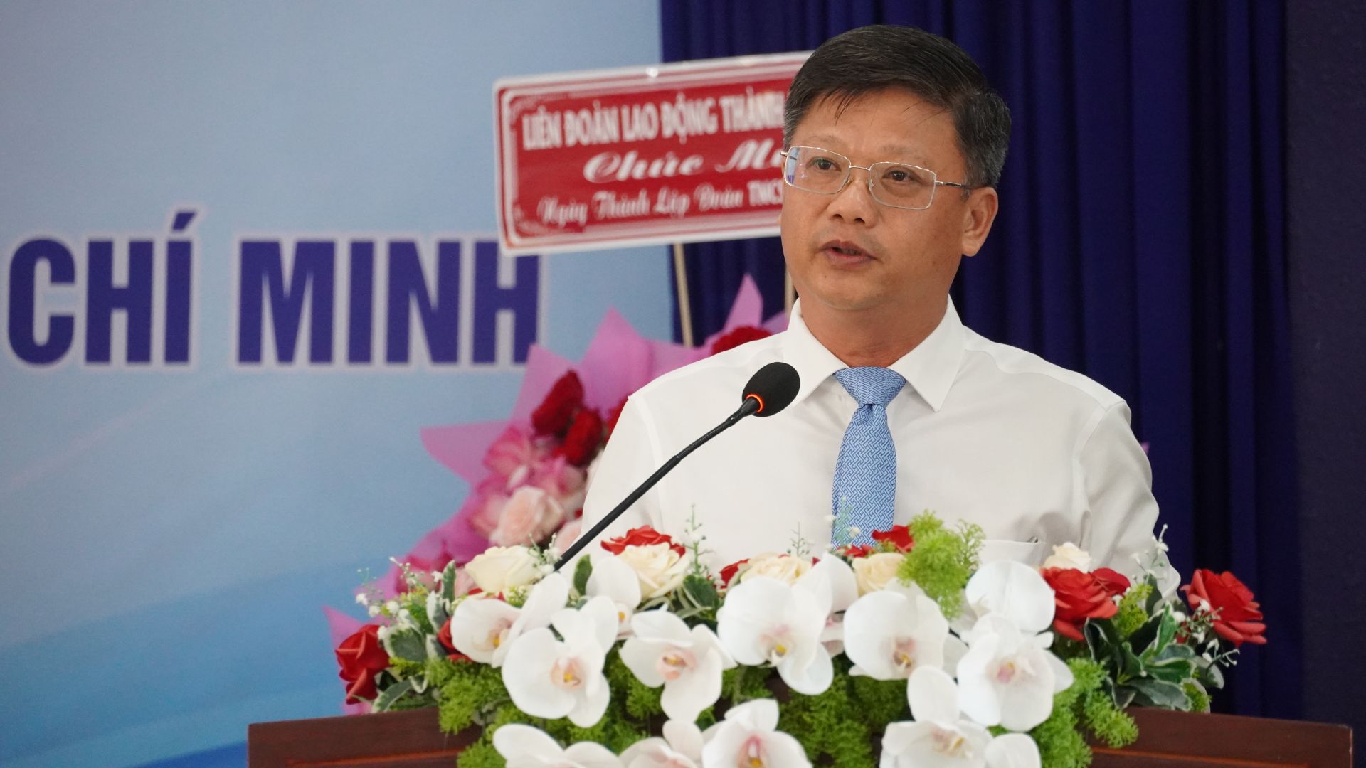 Ông Lê Minh Thế- Bí thư Thành uỷ chúc mừng và ghi nhận những nỗ lực của tổ chức Đoàn các cấp trên địa bàn Thành phố.