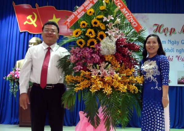 | Ông Nguyễn Văn Hồng- Phó Bí thư thường trực huyện ủy Tân Biên tặng hoa chúc mừng cán bộ lãnh đạo nữ. |