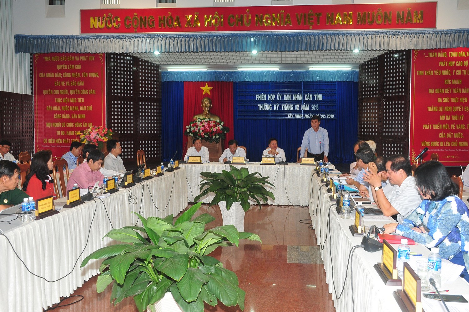 Tại phiên họp, Sở Lao động-Thương binh và Xã hội trình bày Dự thảo hồ sơ Nghị quyết của HĐND tỉnh quy định nguyên tắc, tiêu chí và định mức phân bổ vốn ngân sách nhà nước thực hiện các dự án thành phần thuộc Chương trình mục tiêu quốc gia giảm nghèo bền vững tỉnh Tây Ninh, giai đoạn 2018- 2020; Sở Nông nghiệp và Phát triển nông thôn trình bày Tờ trình về ban hành Nghị quyết quy định mức hỗ trợ các đối tượng tham gia dự án phát triển sản xuất, đa dạng hóa sinh kế và nhân rộng mô hình giảm nghèo bền vững trên địa bàn tỉnh Tây Ninh giai đoạn 2018- 2020; Sở Nội vụ trình bày Tờ trình Quy định chế độ thù lao đối với lãnh đạo chuyên trách trên địa bàn tỉnh; Sở Kế hoạch đầu tư phối hợp với Sở Xây dựng trình bày Tờ trình Điều chỉnh quy hoạch về vật liệu xây dựng tỉnh Tây Ninh đến năm 2020, định hướng đến năm 2030; Sở Tài nguyên và Môi trường trình bày Tờ trình phê duyệt Đề án “Mạng lưới quan trắc tài nguyên và môi trường tỉnh Tây Ninh giai đoạn 2018- 2025, tầm nhìn đến năm 2030”.