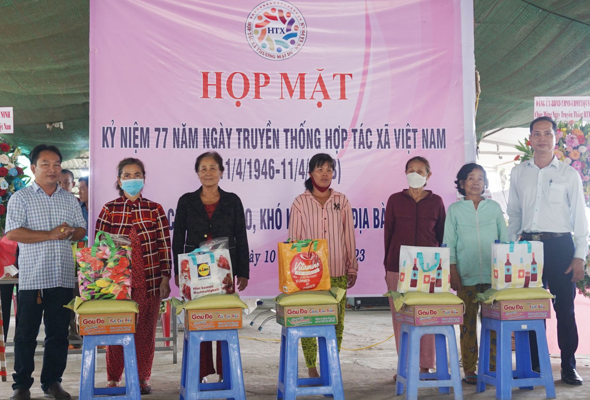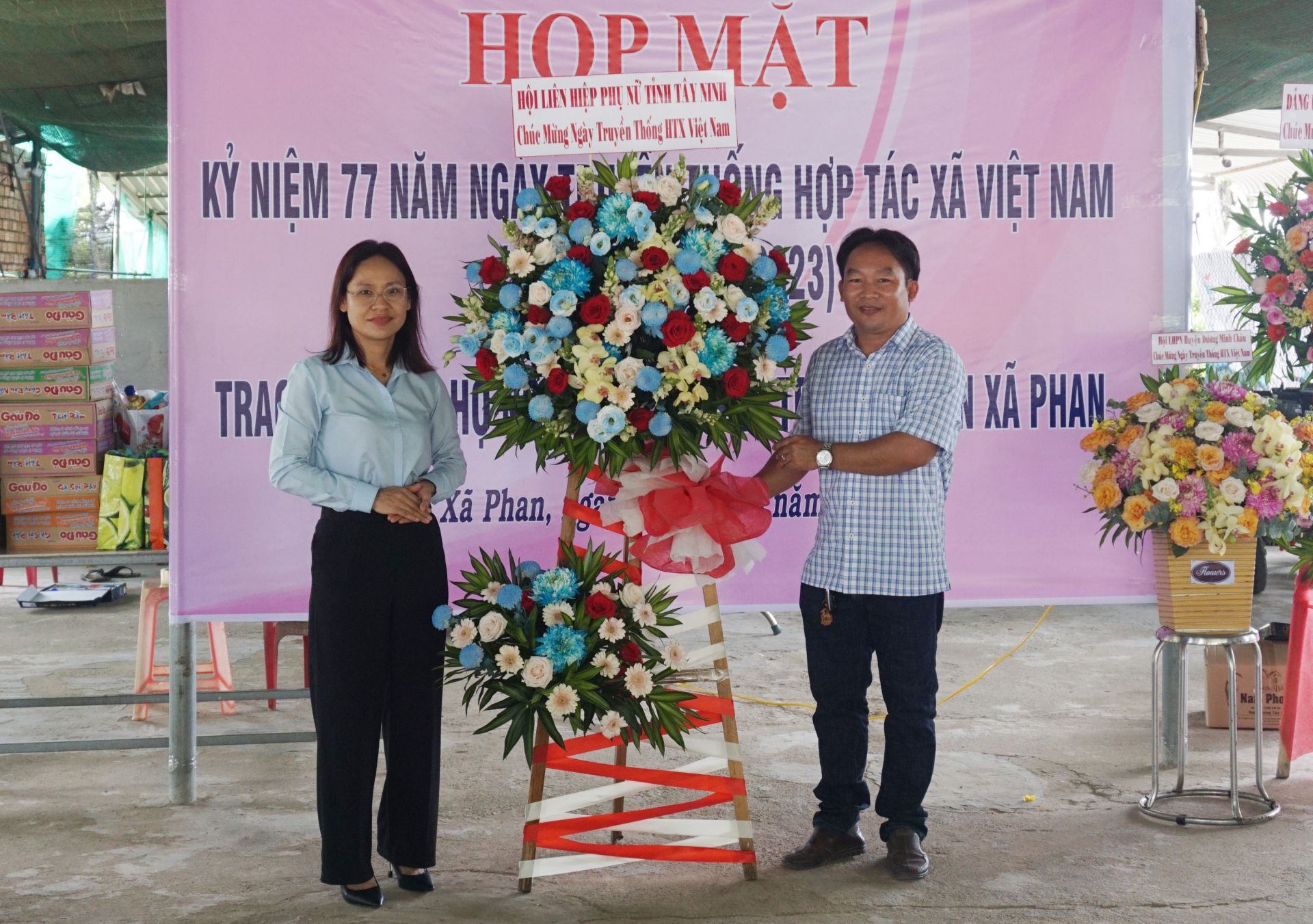 Ngày 10.4, HTX Dịch vụ-Thương mại-Nông nghiệp xã Phan (huyện Dương Minh Châu) tổ chức họp mặt kỷ niệm 77 năm Ngày truyền thống HTX Việt Nam (11.4.1946 – 11.4.2023) và tặng quà cho hộ nghèo, khó khăn trên địa bàn xã. Tham dự họp mặt có bà Kim Thị Minh- Phó Chủ tịch Hội LHPN tỉnh; ông Lê Bảo Dân-Phó Chủ tịch Liên minh HTX tỉnh.