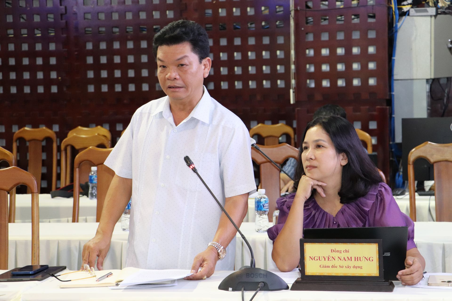 Ông Nguyễn Nam Hưng- Giám đốc Sở Xây dựng trình một số nội dung tại phiên họp UBND tỉnh thường kỳ tháng 6.