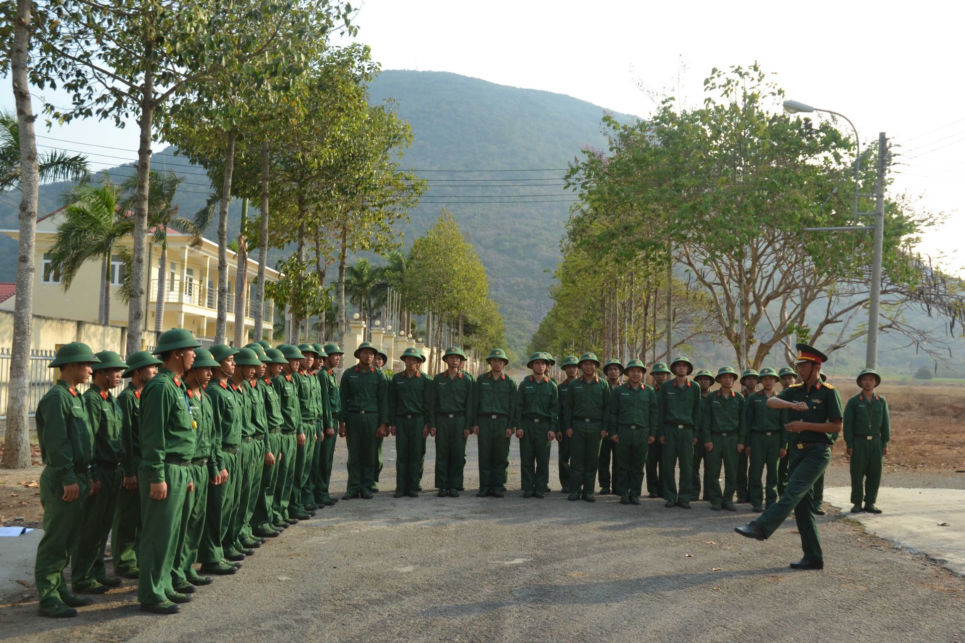 Huấn luyện điều lệnh đội ngũ cho chiến sĩ mới Tiểu đoàn huấn luyện, Trung đoàn 174.