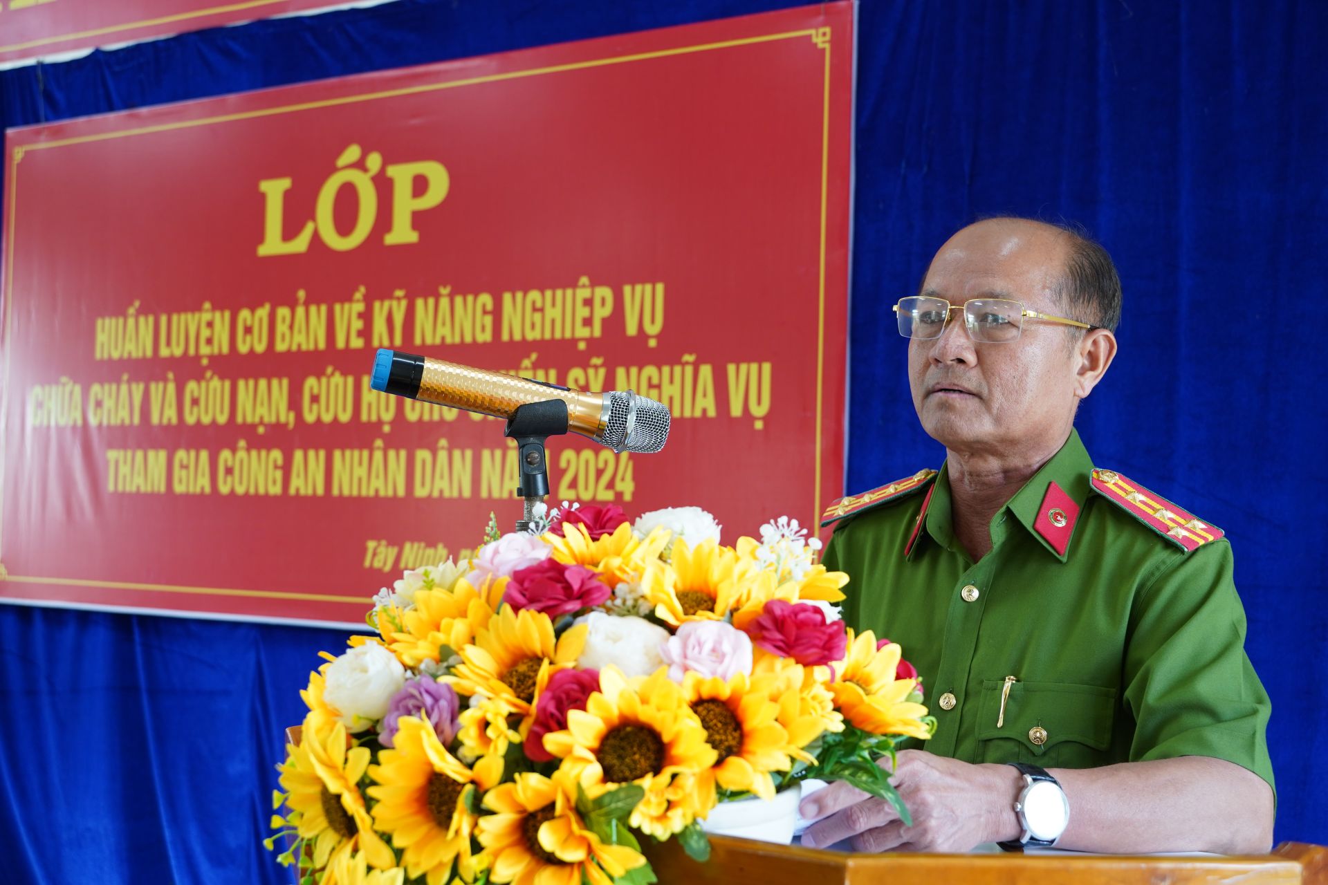 Phát biểu khai giảng lớp huấn luyện, Đại tá Trần Văn Luận- Phó Giám đốc Công an tỉnh yêu cầu Tổ huấn luyện bám sát nội dung chương trình, giáo án để tổ chức huấn luyện phù hợp, sát với thực tế công tác chữa cháy và cứu nạn, cứu hộ, đồng thời đảm bảo tuyệt đối an toàn cho cán bộ, chiến sĩ và phương tiện tham gia lớp huấn luyện.