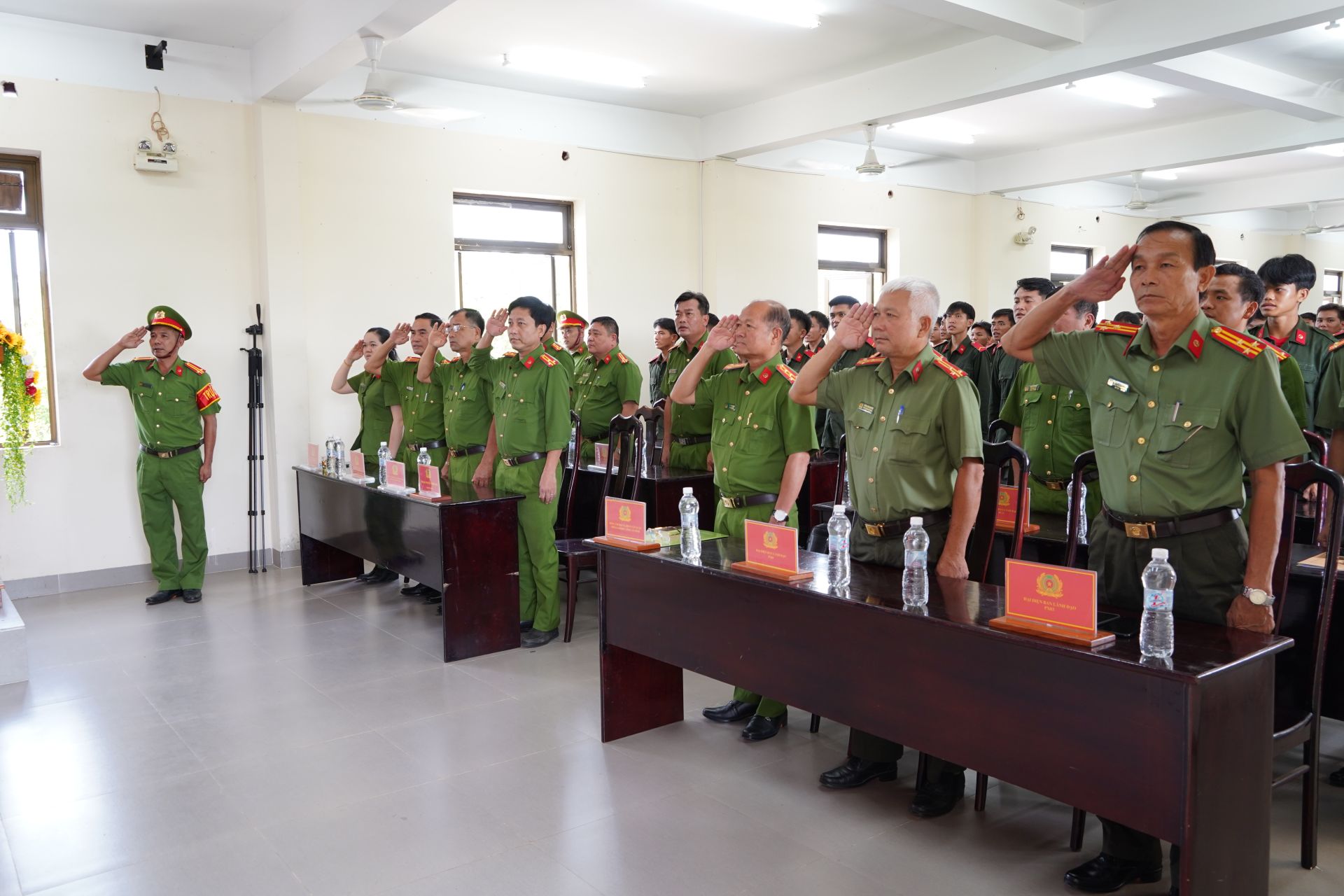 Đại tá Trần Văn Luận- Phó Giám đốc Công an tỉnh phát biểu khai giảng lớp huấn luyện.