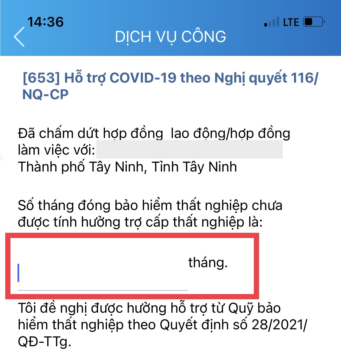 Bước 3: Chọn dịch vụ công Hỗ trợ COVID-19 theo Nghị quyết số 116/NQ-CP (hỗ trợ người tham gia BHTN bị ảnh hưởng bởi đại dịch Covid-19).