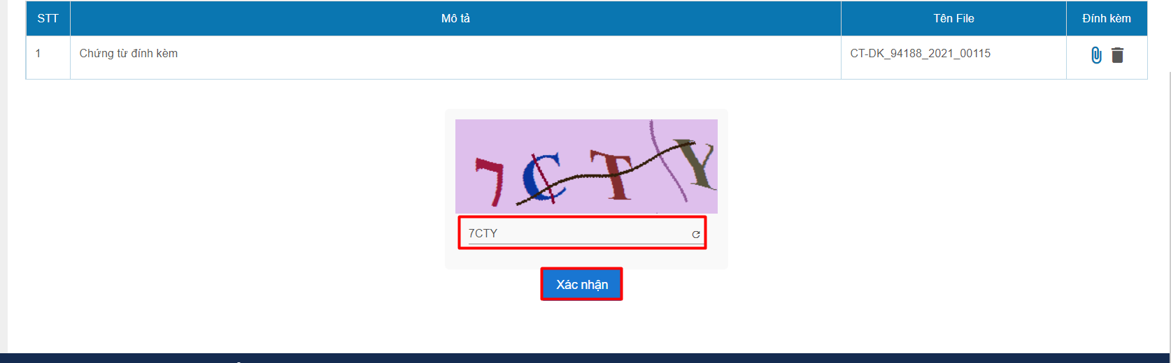 Bước 5: Nộp hồ sơ, nhập mã xác nhận như hình sau: