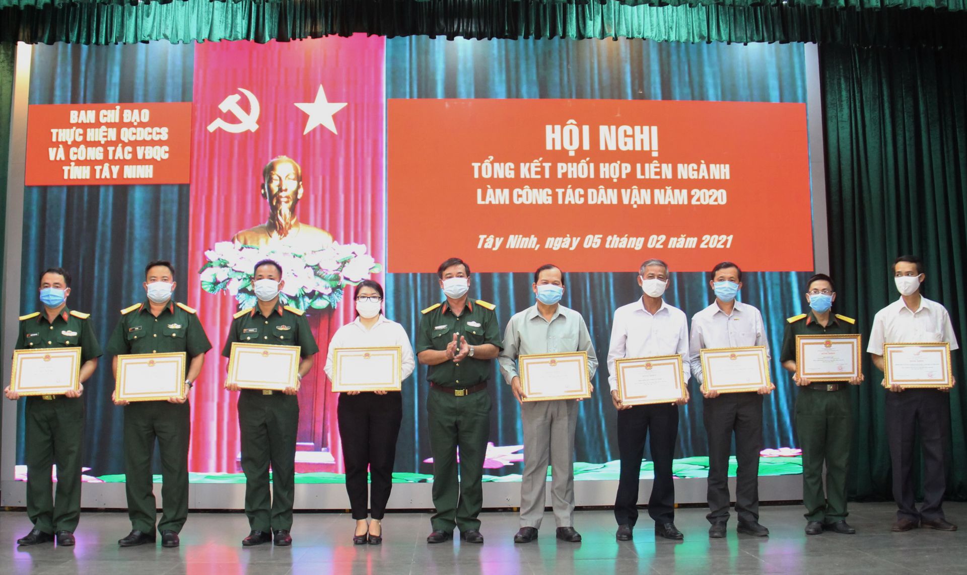 Tại hội nghị tổng kết công tác phối hợp liên ngành làm công tác dân vận năm 2020 ngày 5.2, Ban Chỉ đạo thực hiện Quy chế dân chủ ở cơ sở và công tác vận động quần chúng huyện Bến Cầu và Trung đoàn 174 thuộc Bộ Chỉ huy Quân sự tỉnh được Chủ tịch UBND tỉnh tặng cờ Đơn vị dẫn đầu trong phong trào thi đua thực hiện công tác dân vận năm 2020. Ngoài ra, Chủ tịch UBND tỉnh còn tặng bằng khen cho 38 tập thể, 45 cá nhân có thành tích xuất sắc trong thực hiện công tác dân vận năm 2020.