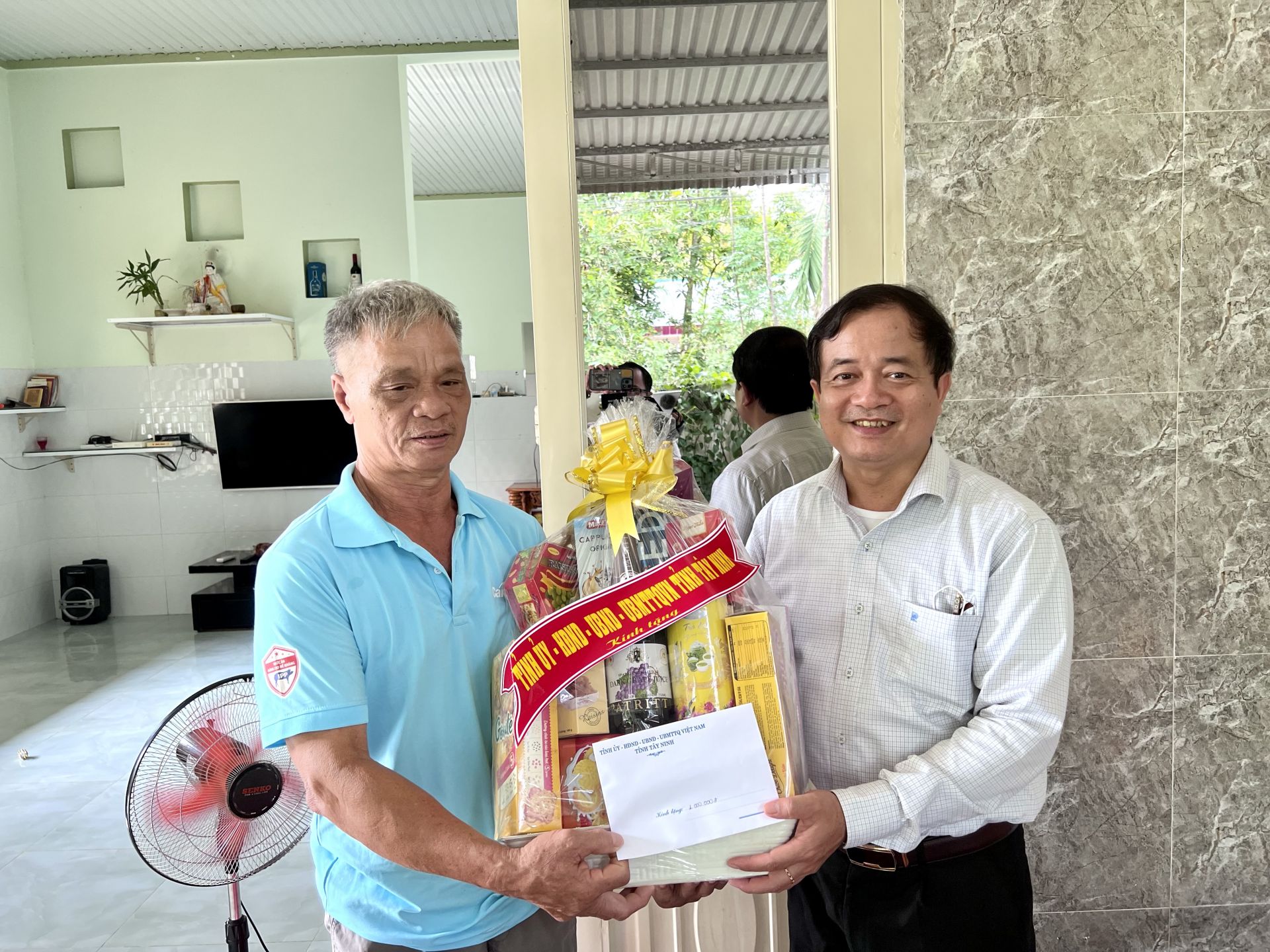 Ông Nguyễn Hồng Thanh- Trưởng Ban Nội chính Tỉnh ủy thăm, tặng quà cho thương binh Bùi Văn Nhưỡng, ngụ ấp Bình Long, xã Thái Bình.