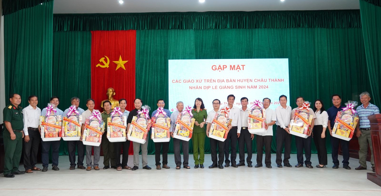 Nhân dịp này, lãnh đạo huyện và Công an huyện Châu Thành đã tặng những phần quà cho các giáo xứ trên địa bàn huyện nhân dịp lễ Giáng sinh năm 2024.