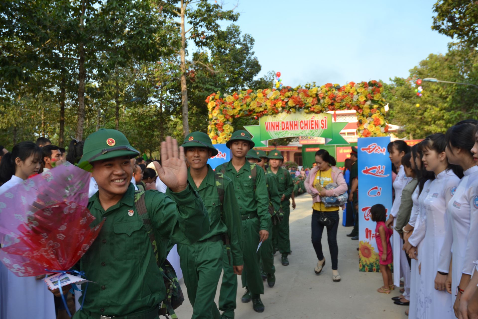 Thanh niên huyện Châu Thành phấn khởi lên đường nhập ngũ (ảnh minh hoạ)