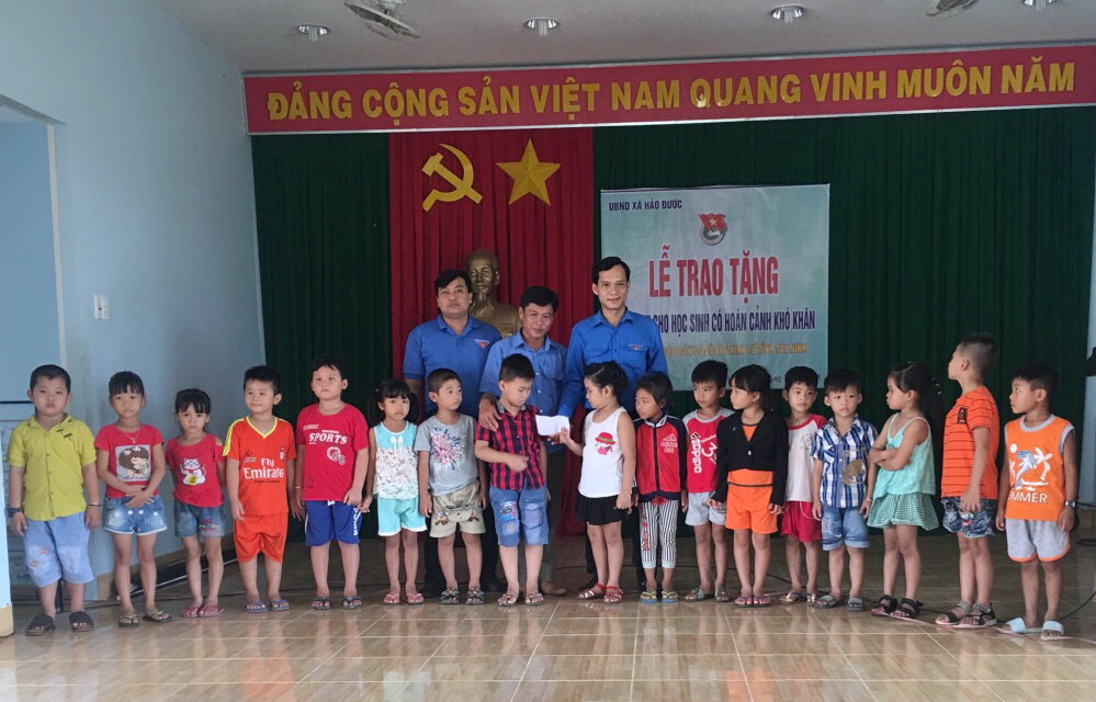 Trao thẻ BHYT cho các em học sinh ở xã Hảo Đước.