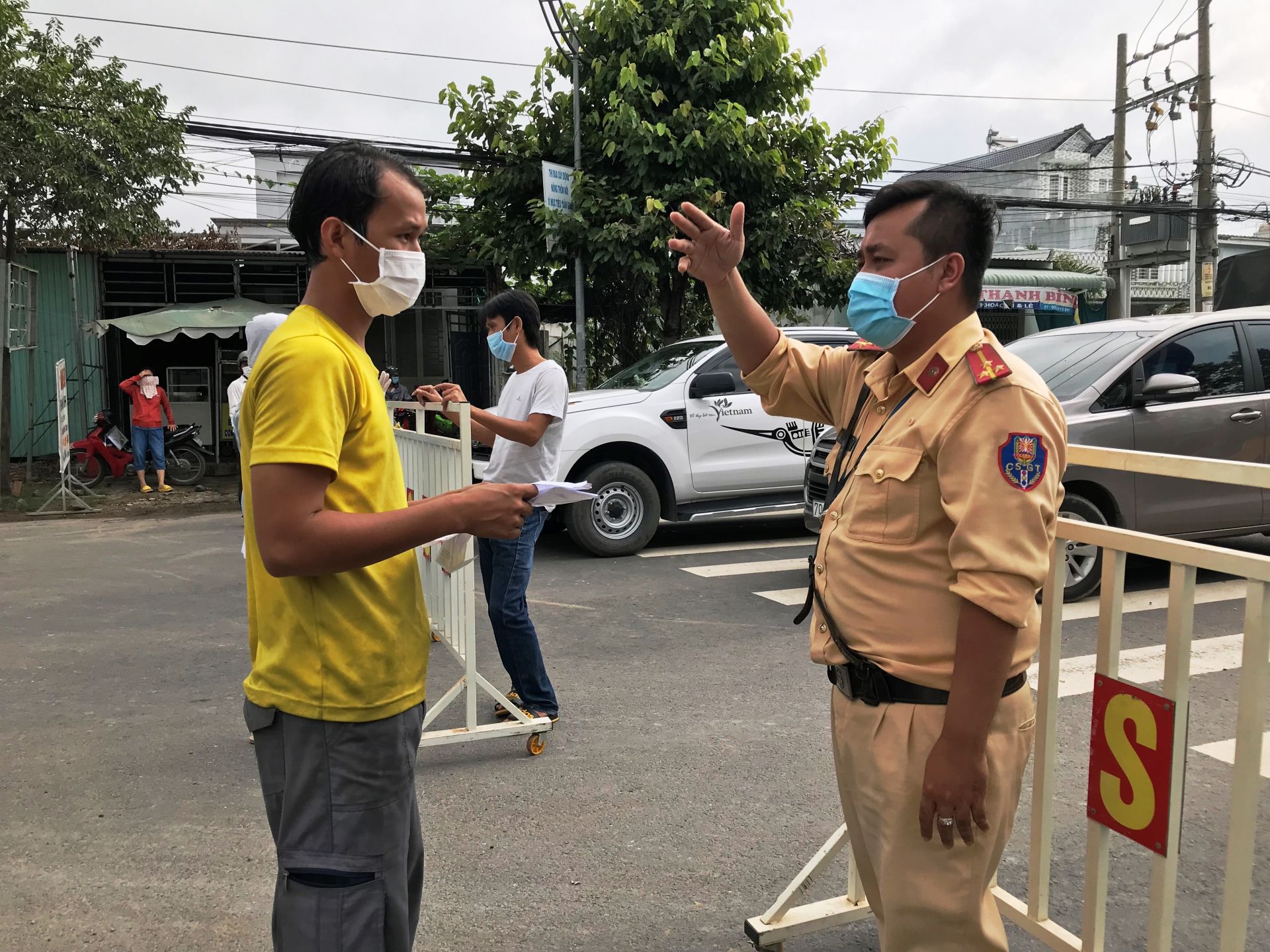Xe vận chuyển hàng hóa, xe đưa rước công nhân hoặc các phương tiện khác nhưng bảo đảm đầy đủ các giấy tờ cần thiết, sau khi tài xế được đo thân nhiệt và sát khuẩn tay, lực lượng chức năng cho phép đi qua.
