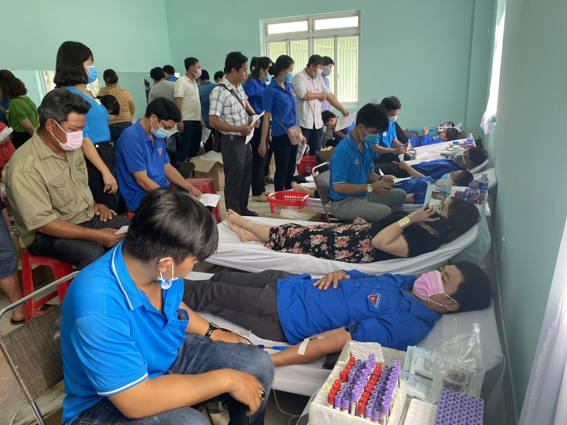 Quang cảnh tình nguyện viên tham gia hiến máu.