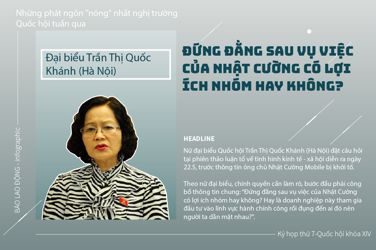 Giá điện tăng, bỏ quy định cấm bán rượu, bia trên Internet, Nhật Cường Mobile là sân sau của ai, gian lận thi cử... là những vấn đề được đại biểu bàn luận và có nhiều phát ngôn chú ý trong tuần đầu tiên của kỳ họp thứ 7-Quốc hội khóa XIV.