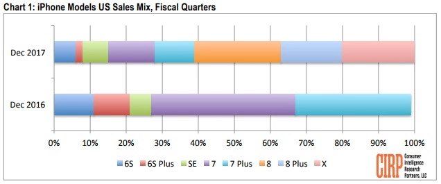 "Với tổng cộng 61%, cả 3 mẫu iPhone mới nhất chỉ chiếm được tỉ lệ doanh số iPhone bán ra ở thị trường Mỹ trong quý thấp hơn bộ đôi thiết bị tiền nhiệm. iPhone 7 và iPhone 7 Plus từng giành được tới 72% doanh số iPhone bán ra dịp lễ tết một năm trước đó", trích tuyên bố của người đồng sáng lập CIRP Josh Lowitz.