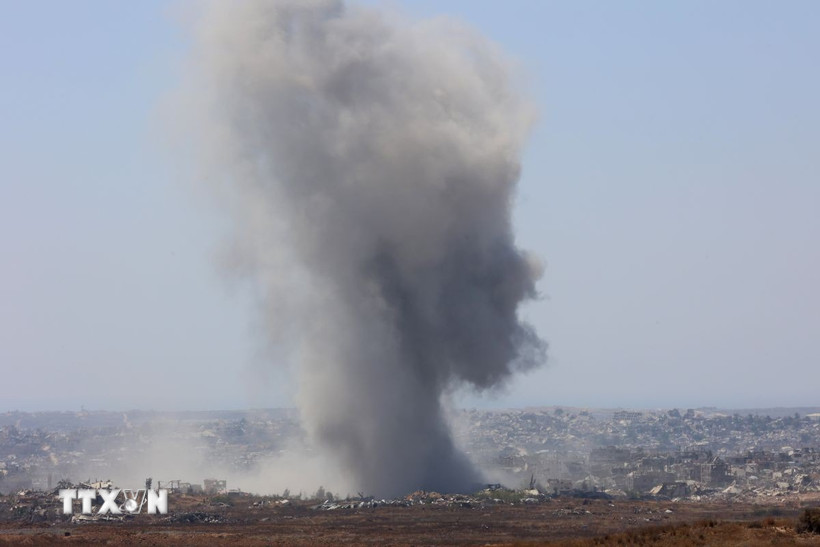 Khói bốc lên sau đòn không kích của Israel xuống Dải Gaza (Ảnh: THX/TTXVN)