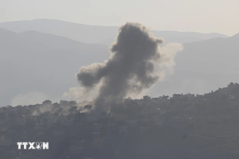 Khói bốc lên sau cuộc không kích của Israel xuống Khiam, Liban. (Ảnh: THX/TTXVN)