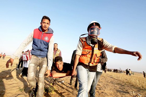 Cấp cứu người bị thương trong đụng độ ở Gaza ngày 19-4