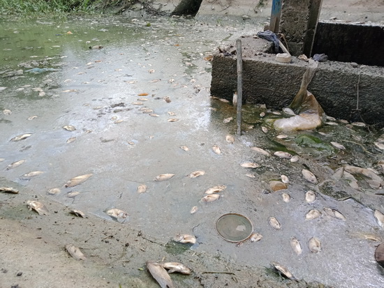 Ngược về hướng đầu kênh TN11, còn cách cầu K21 kênh Tây khoảng 70m, phát hiện có một nguồn nước đục đổ ra từ cống tiêu luồn ngang qua đường Trần Phú (bên cạnh trụ điện số 479TN). Tại khu vực nguồn nước đục đổ ra kênh cũng có nhiều xác cá chết nổi trên mặt nước.