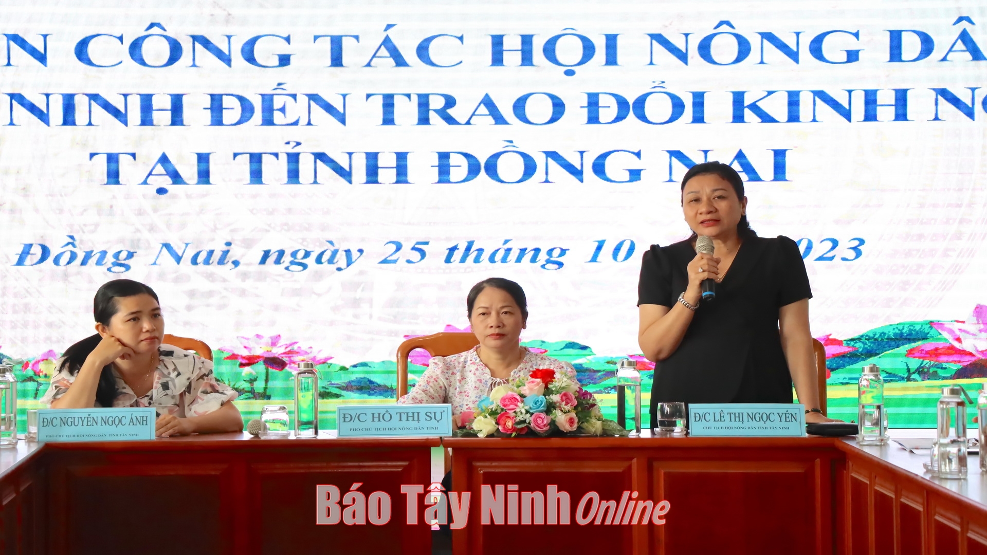 Bà Lê Thị Ngọc Yến- Chủ tịch Hội Nông dân tỉnh Tây Ninh phát biểu tại buổi làm việc với Hội Nông dân tỉnh Đồng Nai.