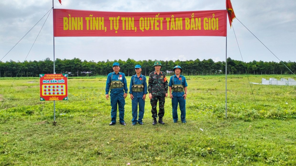 Tham gia đợt huấn luyện, 2 viên chức Báo Tây Ninh là Phạm Quốc Sơn và Phạm Huỳnh Quốc Phong đều đạt kết quả xuất sắc, được Ban CHQS Thành phố tặng hoa bắn giỏi.