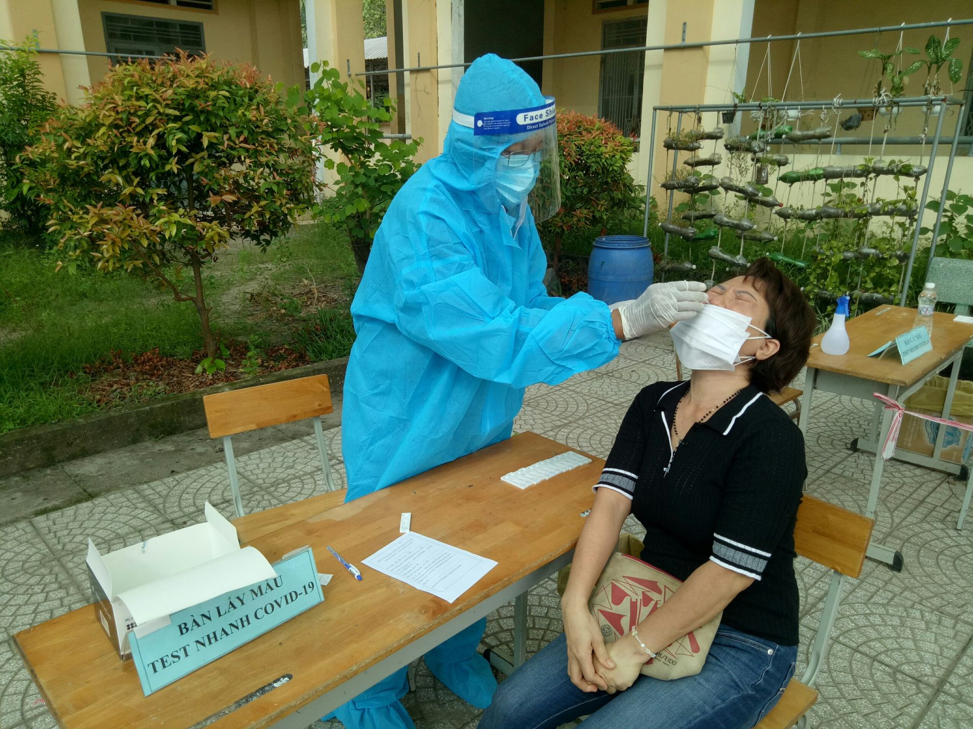 Lấy mẫu test nhanh Covid-19 cho người dân tiêm vaccine phòng Covid-19 tại phường An Hoà, thị xã Trảng Bàng. Ảnh: Quốc Huy