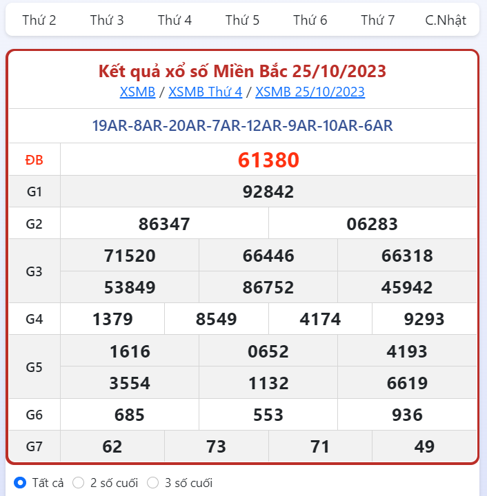 Xem kết quả xổ số miền Bắc tại website.
