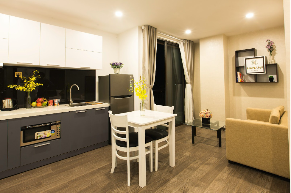 Đặc biệt là các căn hộ gia đình rộng rãi 55m2, có 2 ban công, view thoáng mát, đầy đủ bếp có thể nấu ăn. Và các dụng cụ nấu bếp được trang bị sẵn. Khách hàng chỉ cần đặt phòng và mang hành lý vào ở thôi.