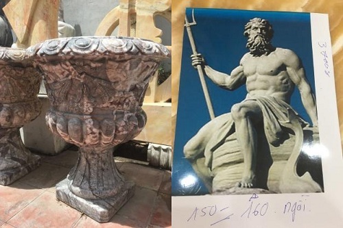 Du khách Australia đặt một bức tượng tạc thần Neptune kích cỡ như người thật, hai lư đá cẩm thạch, một tượng trang trí cùng bàn và ghế đá.
