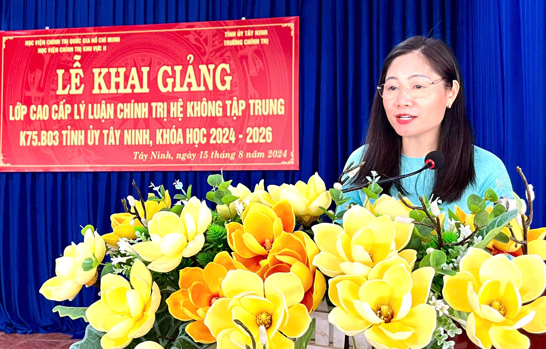 Chiều 15.8, Ban Tổ chức Tỉnh ủy và Trường Chính trị tỉnh phối hợp với Học viện Chính trị khu vực II tổ chức lễ khai giảng lớp Cao cấp Lý luận chính trị hệ không tập trung K75.B03 tại Tây Ninh, khóa học 2024 - 2026.