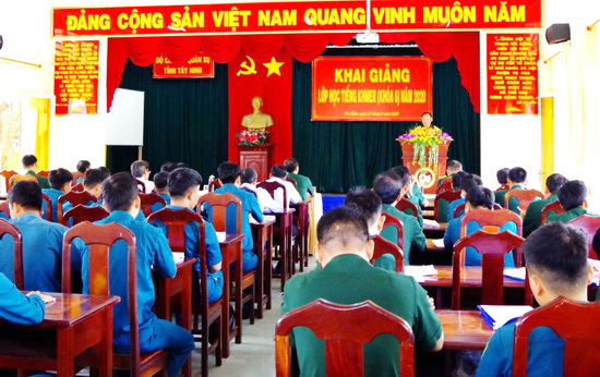 Bộ CHQS vừa phối hợp với Trung tâm giáo dục thường xuyên tỉnh tổ chức khai giảng khoá VI lớp tiếng Khmer cho lực lượng vũ trang huyện Tân Châu.
