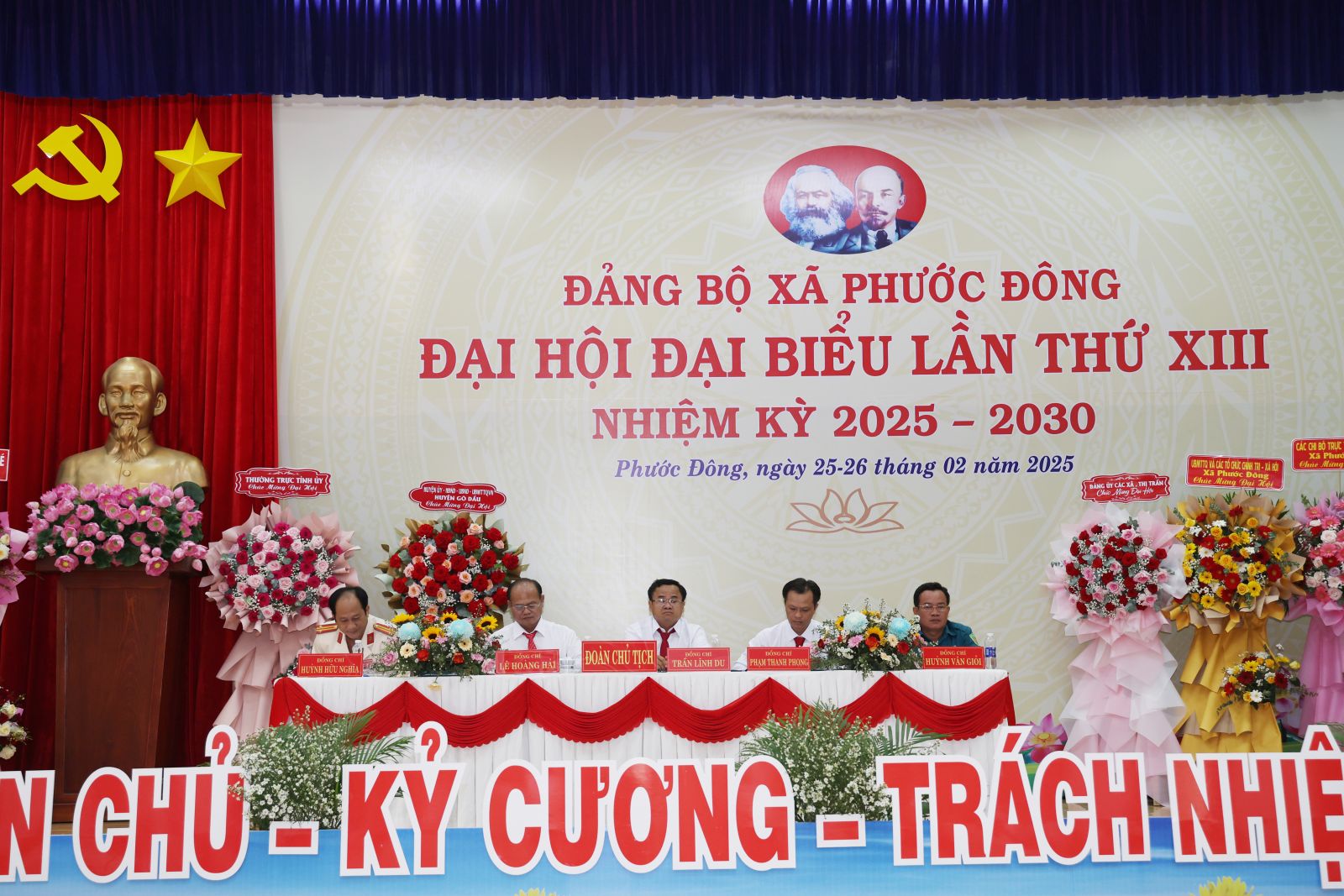 Tại phiên làm việc buổi sáng, Đại hội đã thảo luận đóng góp dự thảo văn kiện trình Đại hội XV Đảng bộ huyện Gò Dầu; dự thảo báo cáo chính trị của Ban Chấp hành Đảng bộ xã Phước Đông, lần thứ XIII; báo cáo kiểm điểm sự lãnh đạo, chỉ đạo của Ban Chấp hành Đảng bộ xã lần thứ XII, nhiệm kỳ 2025-2030. Cũng tại phiên làm việc buổi sáng, Đại hội tiến hành bầu Ban Chấp hành Đảng bộ xã Phước Đông, khoá XIII, nhiệm kỳ 2025–2023.