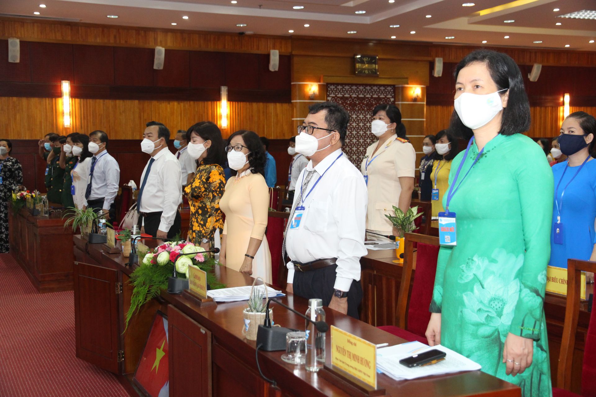 Bà Nguyễn Thị Minh Hương – Phó Chủ tịch Trung ương Hội LHPN Việt Nam cùng các đại biểu chào cờ khai mạc đại hội.
