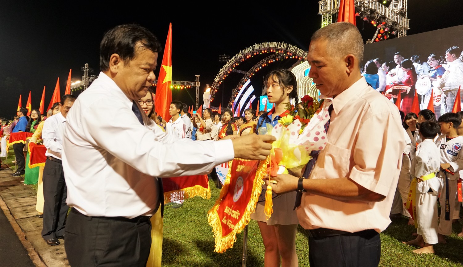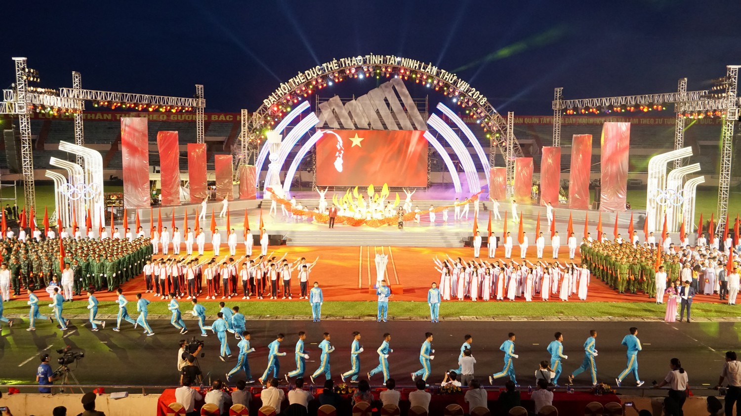 18 giờ 30 phút, Đại hội TDTT tỉnh Tây Ninh lần thứ VIII chính thức khai mạc. Mở đầu chương trình khai mạc Đại hội là màn diễu hành cờ Tổ quốc, kiệu ảnh Bác, cờ Đại hội, đội hồng kỳ qua lễ đài.