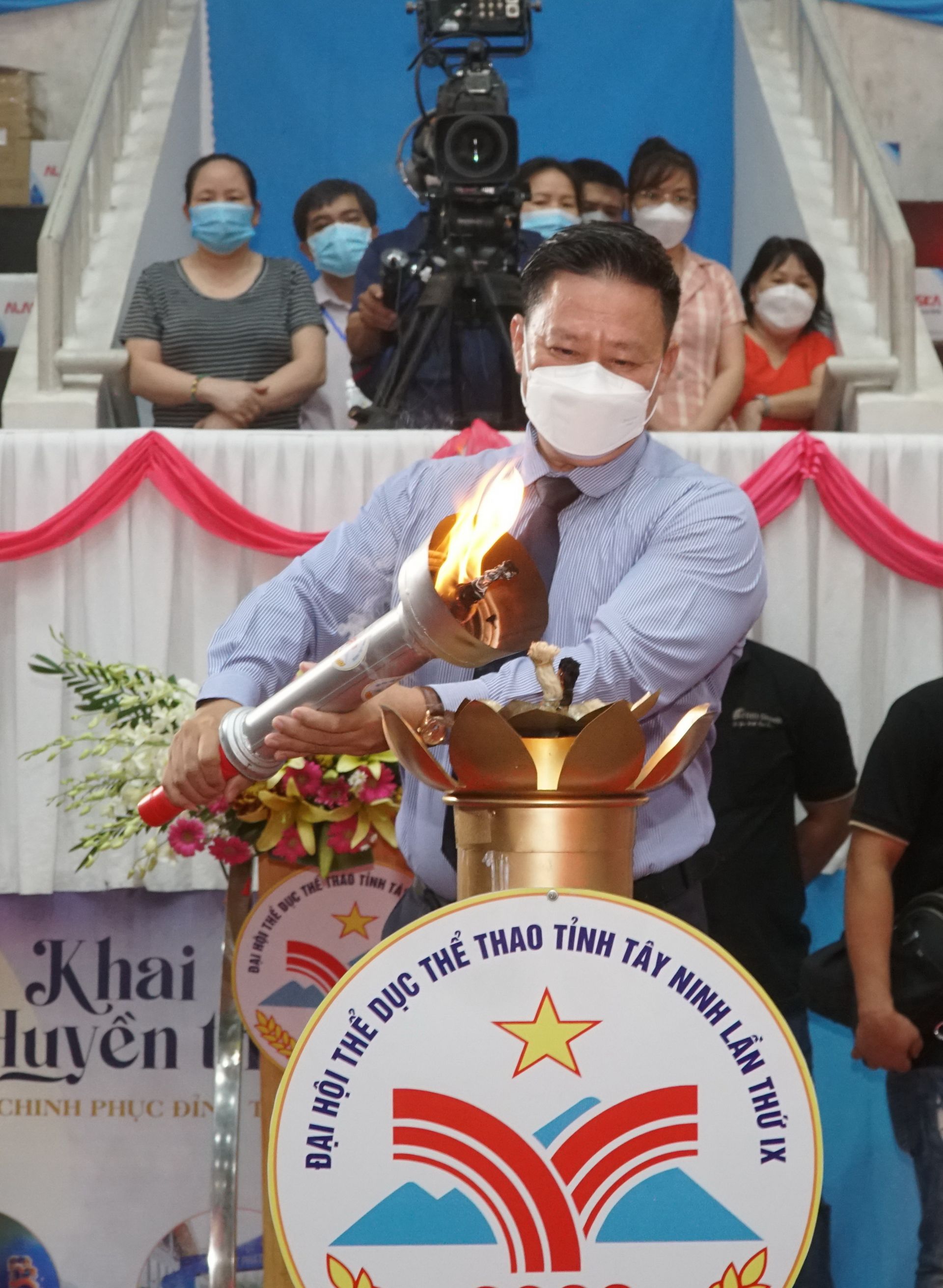 Ông Nguyễn Thanh Ngọc- Chủ tịch UBND tỉnh châm đuốc khai mạc Đại hội TDTT tỉnh Tây Ninh lần thứ IX năm 2022.