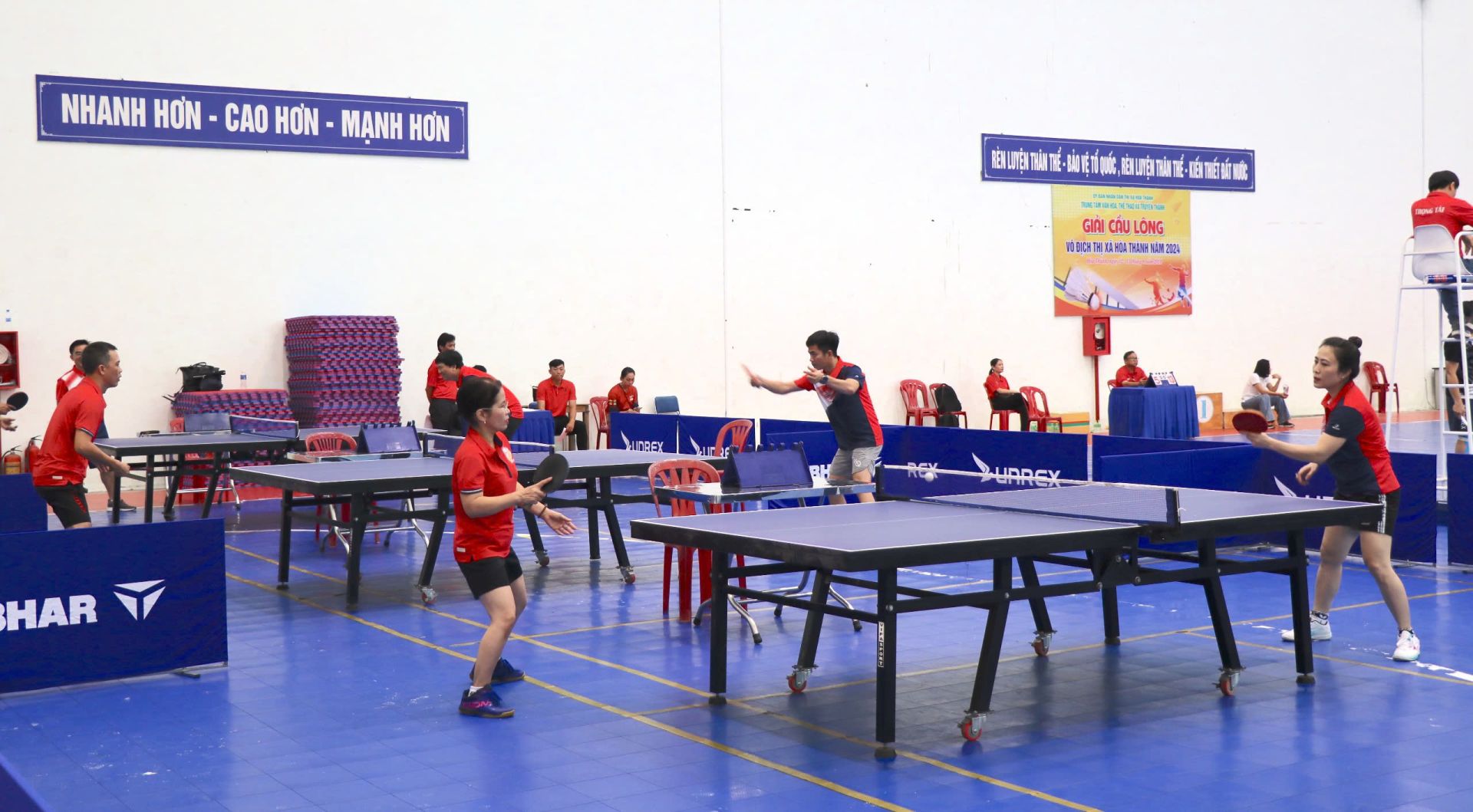 Các vận động viên tham gia thi đấu môn bóng bàn.