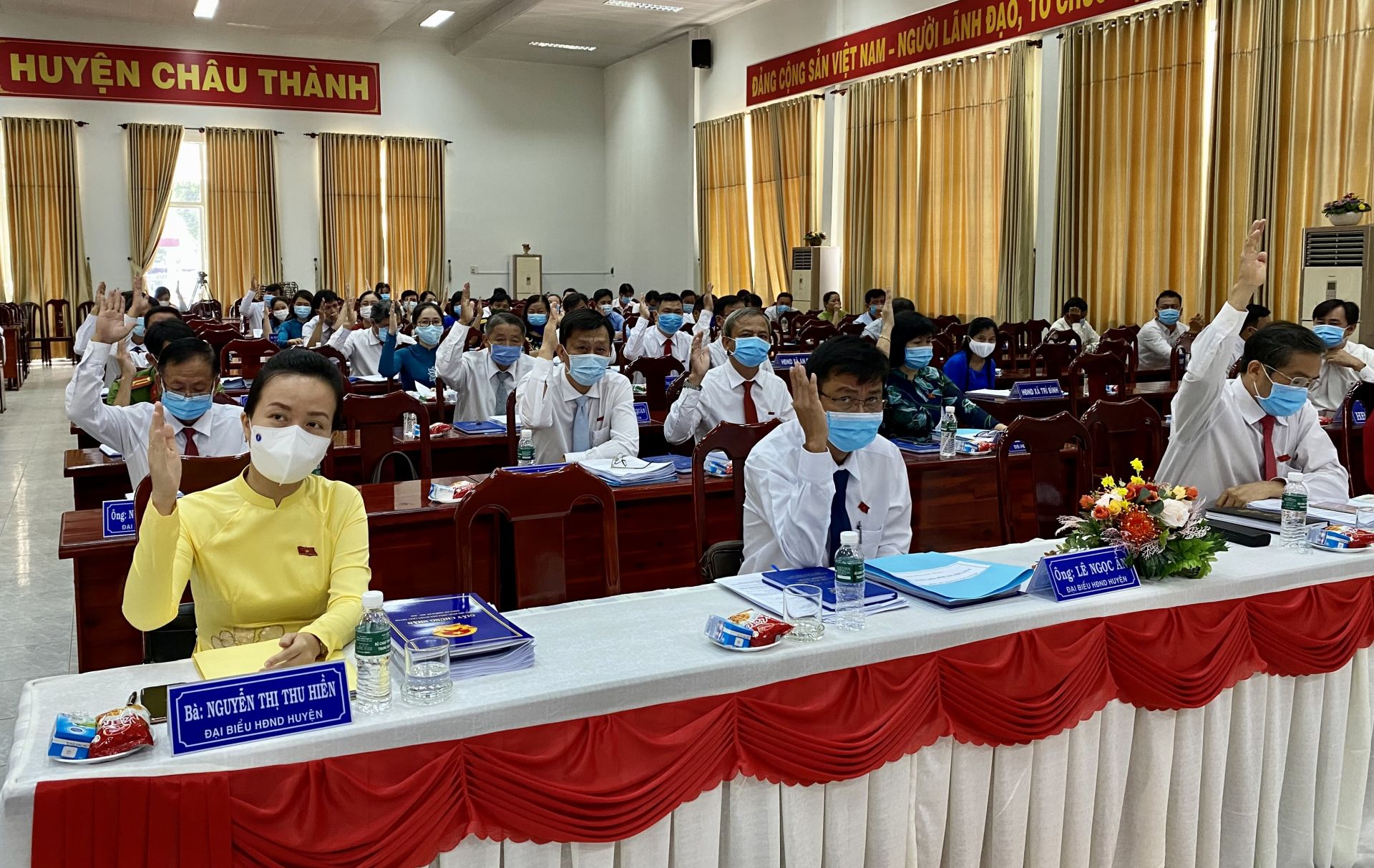 Tại kỳ họp này, HĐND huyện Châu Thành bỏ phiếu bầu các chức danh chủ chốt HĐND và UBND huyện nhiệm kỳ 2021 - 2026. Ông Thân Văn Nhân- Chủ tịch HĐND huyện khóa XI được bầu giữ chức danh Chủ tịch HĐND huyện khóa XII; ông Nguyễn Thanh Lam- Phó Chủ tịch HĐND huyện khóa XI, được bầu giữ chức Phó Chủ tịch HĐND huyện khóa XII.