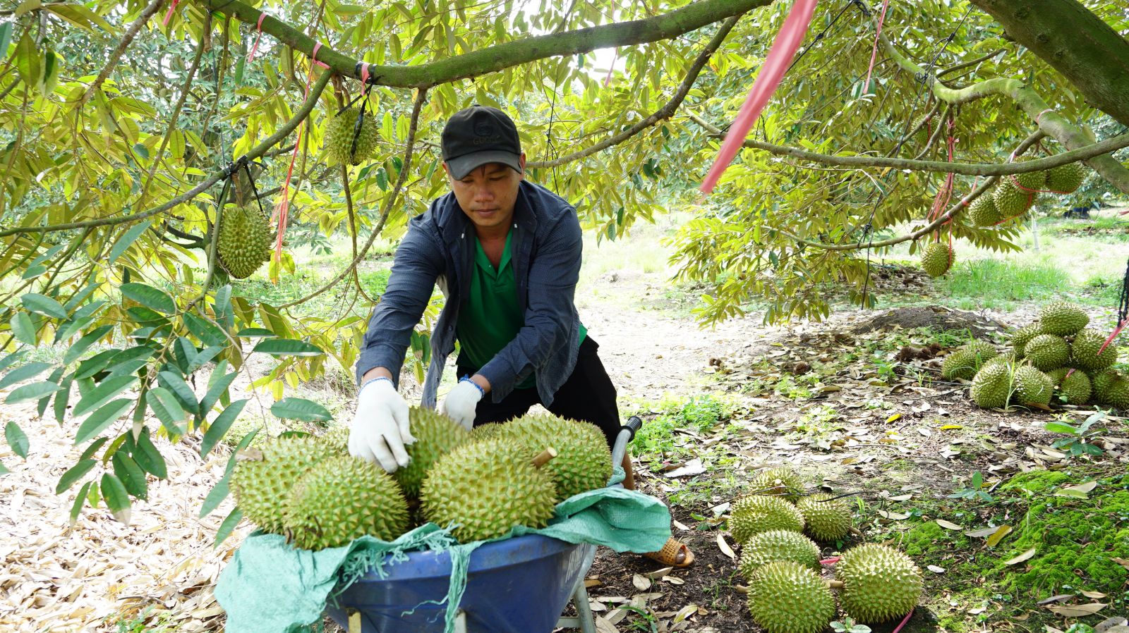 Hiện tại, thị trường xuất khẩu sầu riêng rất khó, đòi hỏi sản phẩm sầu riêng đạt chất lượng cao. Chính vì vậy, sầu riêng muốn có đầu ra ổn định, trước khi cắt trái bắt buộc phải được lấy mẫu kiểm nghiệm dư lượng chất vàng O và Cadimi, nếu sầu riêng đủ tiêu chuẩn, đơn vị thu mua mới tiến hành cắt trái, mỗi vườn đều được đánh mã số riêng để bảo vệ mã số vùng trồng của từng vườn.