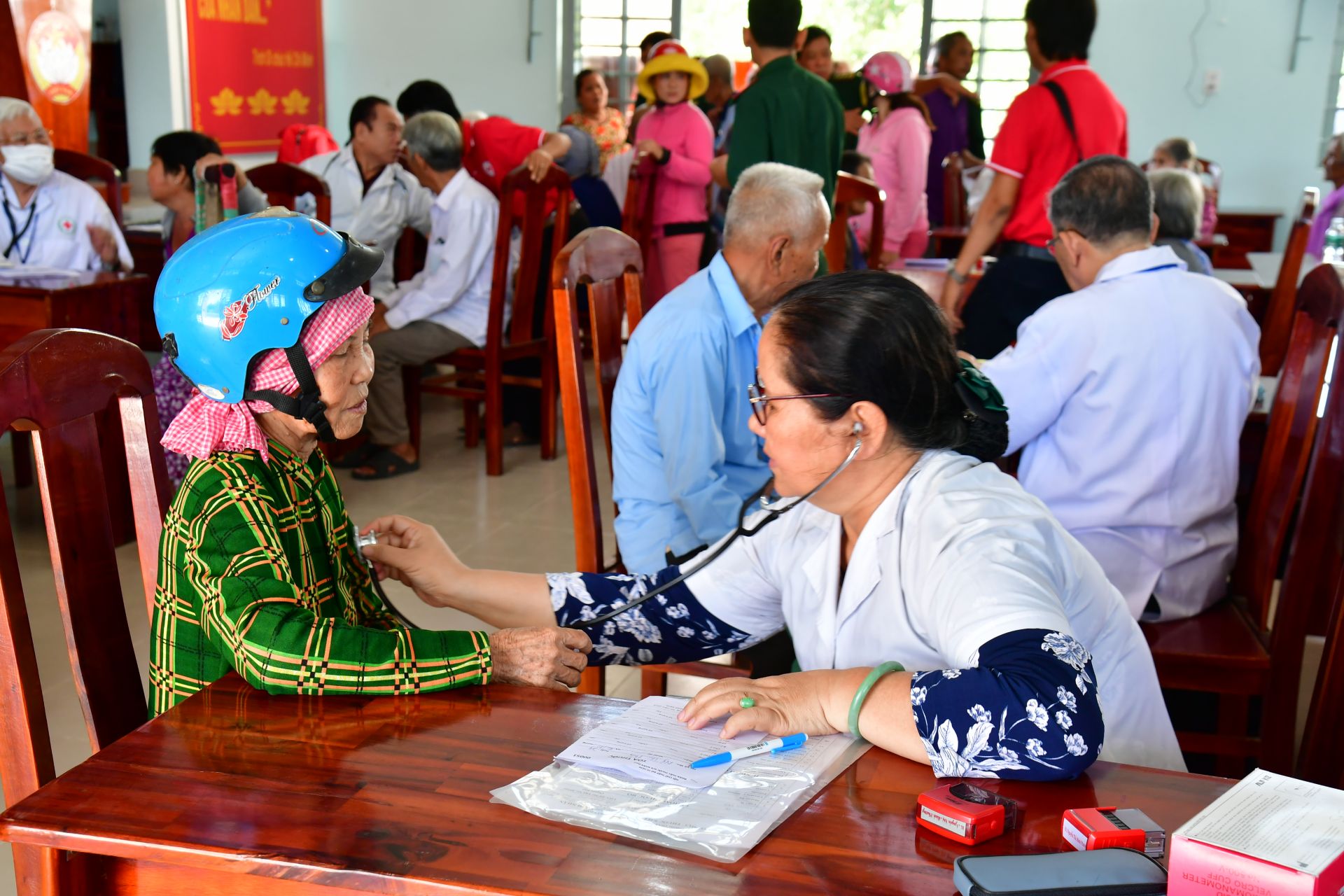 Hỗ trợ cho hoạt động từ thiện này có Đoàn bác sĩ thiện nguyện và Ban trụ trì Chùa Huyền Trang tại TP.HCM cùng Quân y Biên phòng Tây Ninh và cán bộ chiến sĩ Đồn biên phòng Phước Tân.