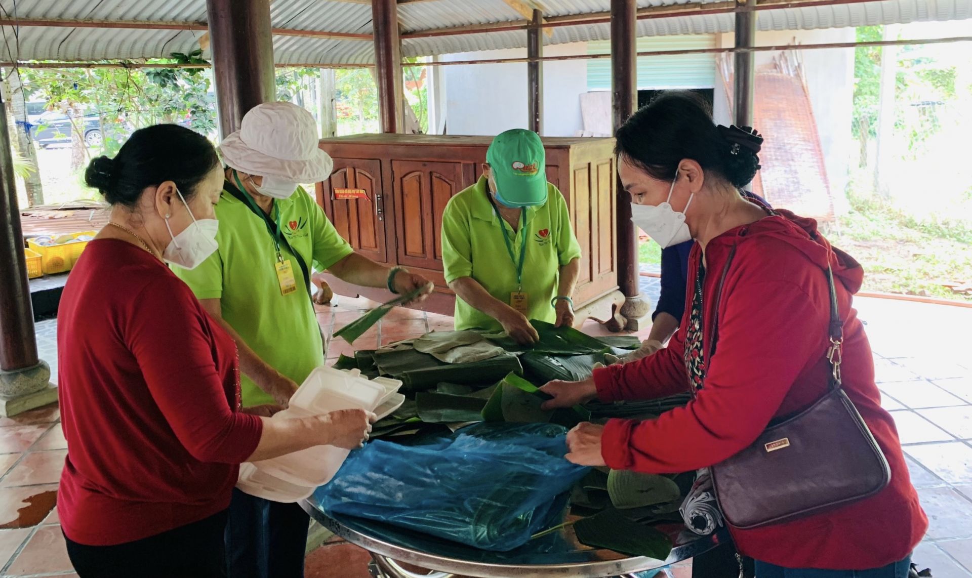 Các thành viên khác của đoàn chuẩn bị bữa ăn.