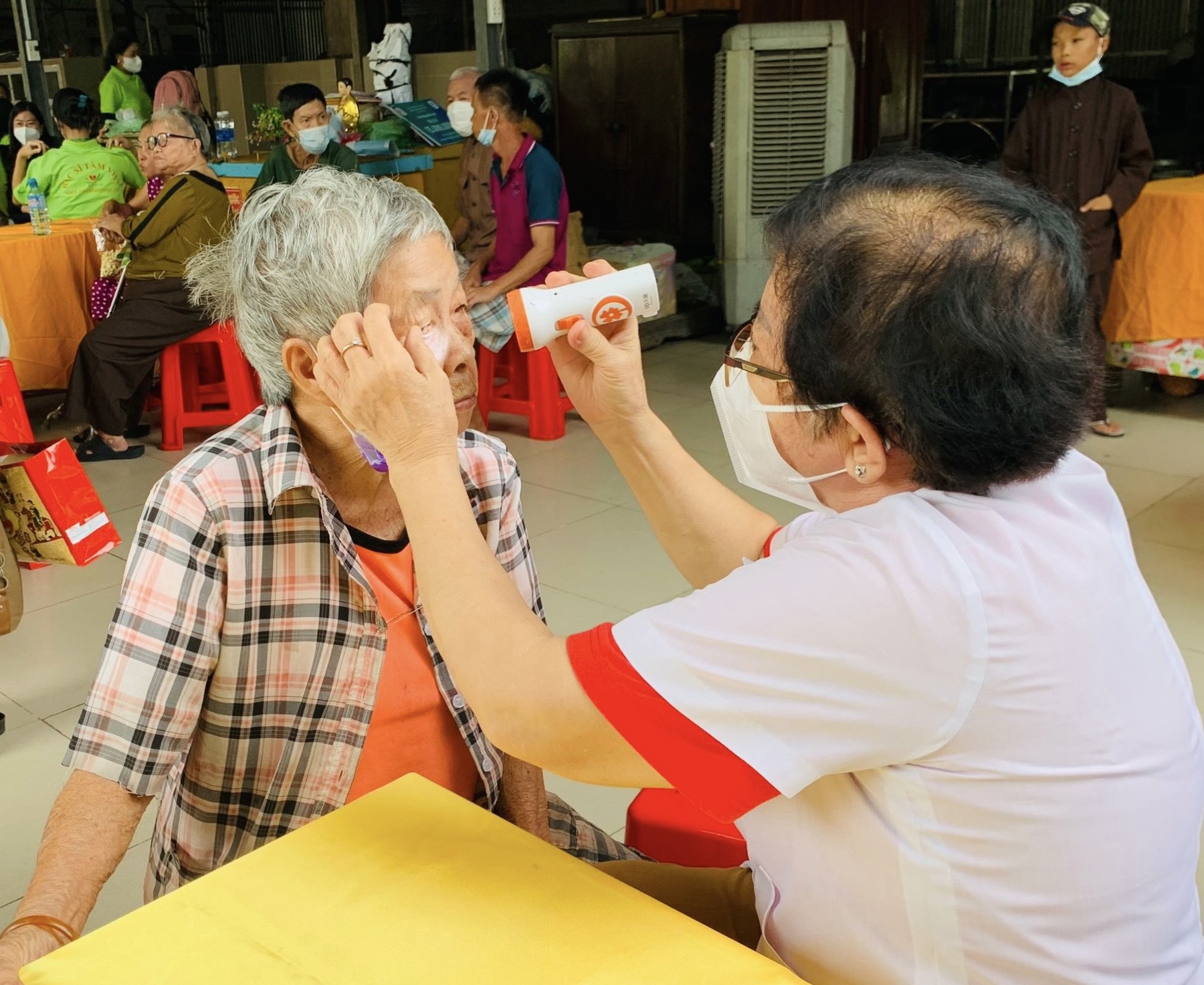 Một cụ bà được khám mắt.
