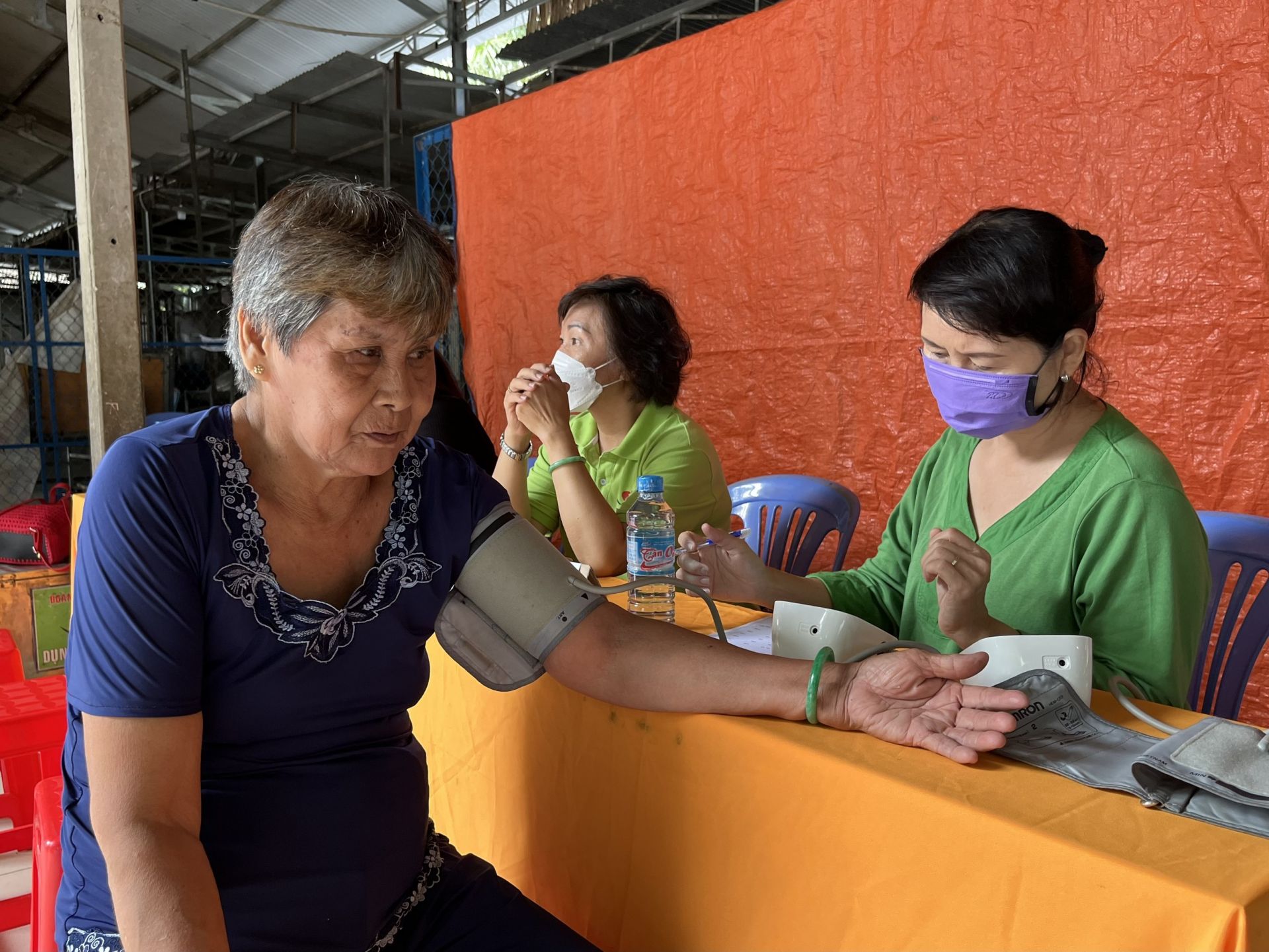Các bác sĩ Đoàn bác sĩ Tâm Việt khám bệnh cho các cụ già tại Cơ sở bảo trợ Minh Đức.