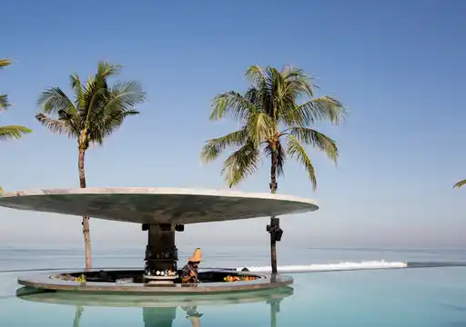 Khách sạn boutique này nằm ở Seminyak, nổi tiếng với hồ bơi vô cực tuyệt đẹp nhìn ra biển. Hồ bơi được thiết kế độc đáo với phần rìa tràn tạo cảm giác như hòa quyện vào đại dương.