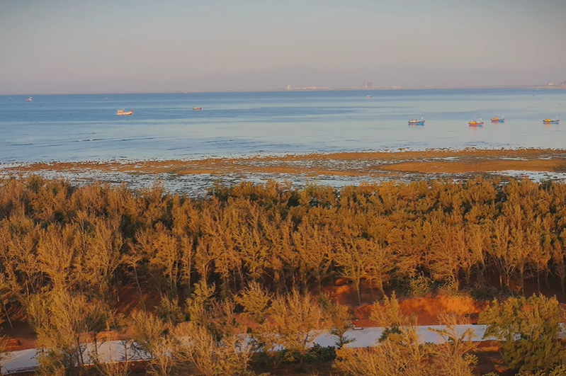 Những hàng cây ven biển làm Hòn Đỏ thêm sinh động. Ảnh: CTV Thạch Thảo