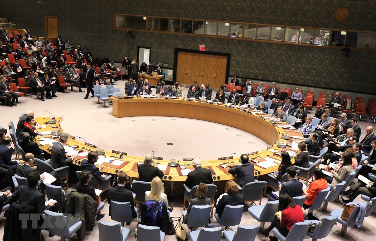 Toàn thể phiên thảo luận mở của Hội đồng Bảo an (ngày 21/1 tại trụ sở Liên hợp quốc ở New York, Mỹ) về vấn đề Palestine-Israel do Việt Nam chủ trì trên cương vị Chủ tịch Hội đồng Bảo an Liên hợp quốc. (Ảnh: Khắc Hiếu/TTXVN)