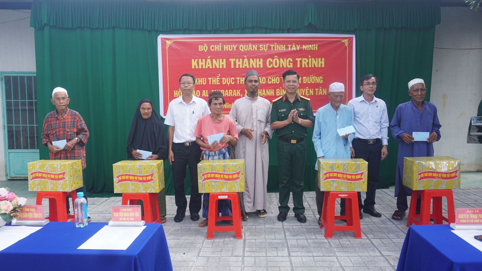 Ngày 31.8, thừa uỷ quyền của thủ trưởng Bộ Tư lệnh Quân khu 7, được sự nhất trí của cấp uỷ, chính quyền địa phương, Bộ CHQS tỉnh phối hợp tổ chức lễ khánh thành các công trình thể thao tại thánh đường Hồi giáo Islam Al Mubarak (ấp Thạnh Thọ, xã Thạnh Bình, huyện Tân Biên) và giáo xứ Cao Xá (thị trấn Châu Thành, huyện Châu Thành). Các công trình được khởi công xây dựng, lắp đặt từ đầu tháng 7. Sau 2 tháng thi công, các công trình này được khánh thành và bàn giao sử dụng.
