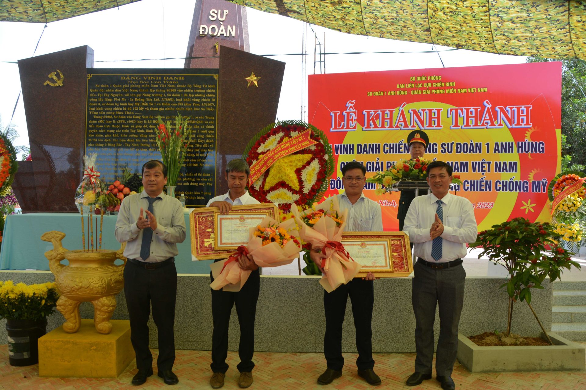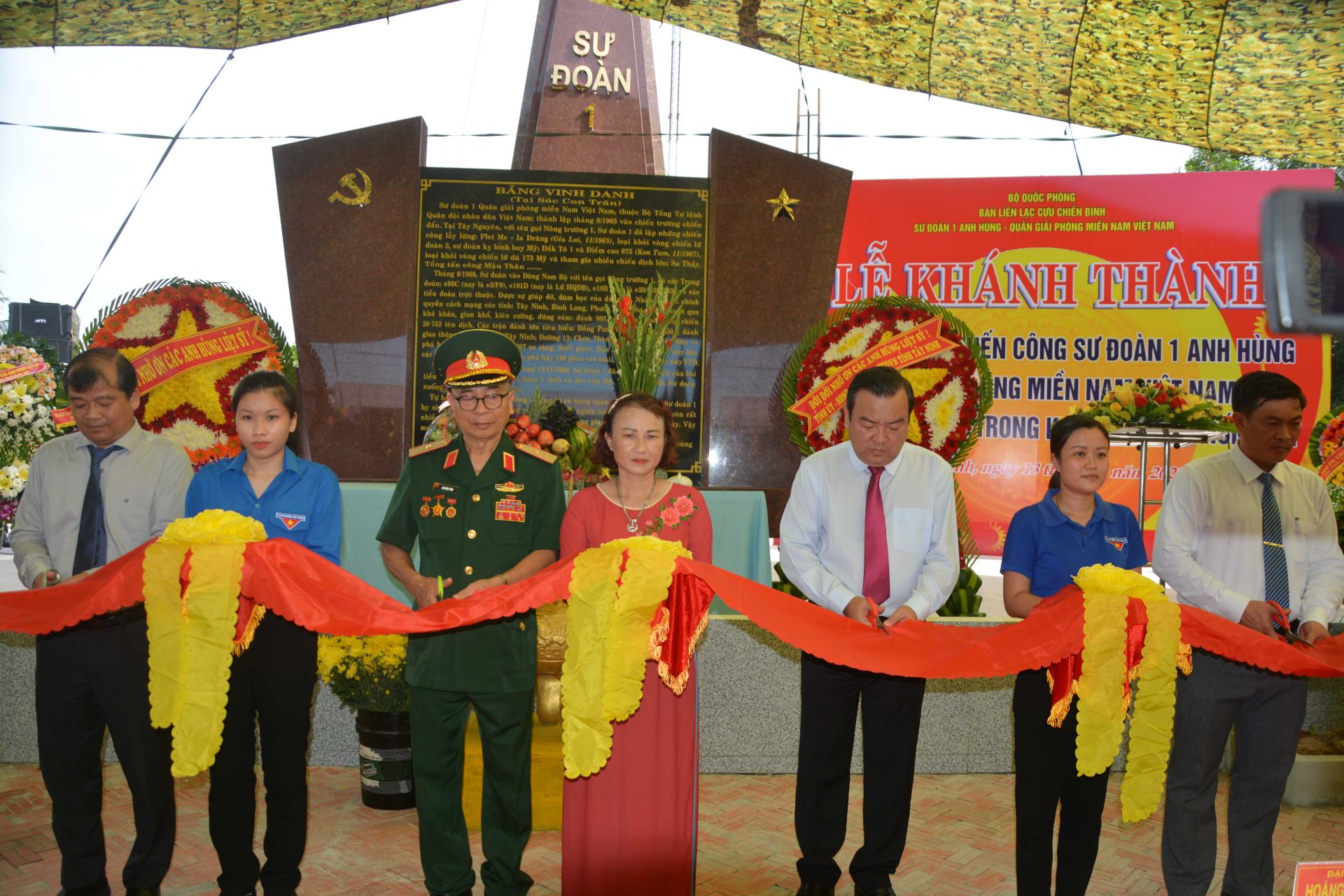 Dự lễ khánh thành có phó Bí thư Thường trực Tỉnh uỷ, Trưởng Đoàn ĐBQH tỉnh Phạm Hùng Thái; ông Võ Đức Trong- Phó Chủ tịch Thường trực UBND tỉnh, lãnh đạo huyện Tân Châu cùng đông đảo cựu chiến binh Sư đoàn 1 anh hùng Quân giải phóng miền Nam Việt Nam qua các thời kỳ.