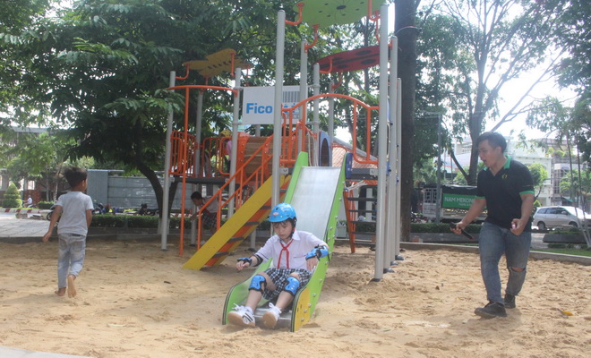 Khu vui chơi thiếu nhi ngoài trời được đặt tại Công viên 30.4, gồm 2 cụm trò chơi vận động liên hoàn và 2 khu vận động kết hợp nhiều trò chơi như cầu tuột, thang leo, xích đu, bập bênh, thú nhún, cầu treo… Tổng giá trị cụm trò chơi là 500 triệu đồng, do Công ty Cổ phần Xi măng Fico Tây Ninh tài trợ.