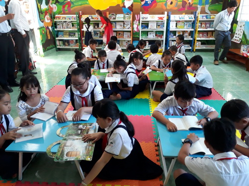 Với Thư viện thân thiện, học sinh được thoải mái và dễ dàng lựa chọn sách, vì sách được phân loại theo trình độ đọc dựa vào mã màu, quy trình mượn trả sách đơn giản. Không chỉ phục vụ nhu cầu đọc sách của học sinh, thư viện còn mở cửa rộng đón các bậc cha mẹ học sinh cùng đến đọc sách với con, tiến tới cả gia đình tham gia đọc sách.